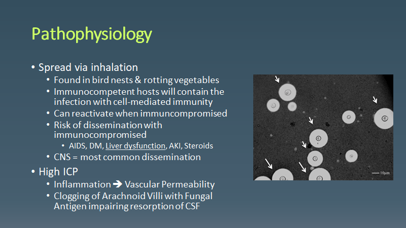 Today, we had an HIV-negative patient who was likely immuncompromised from EtOH cirrhosis who presented as a trauma after an unwitnessed fall with AMS, later found to have Cryptococccal meningitis!