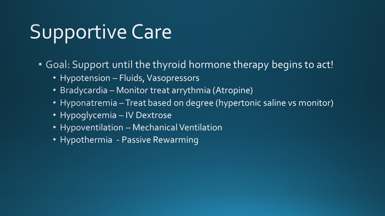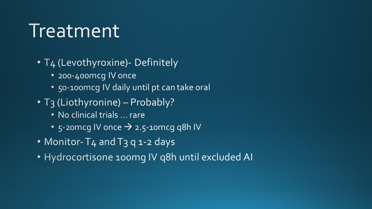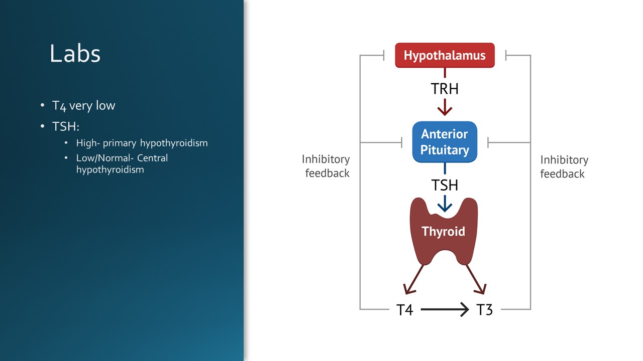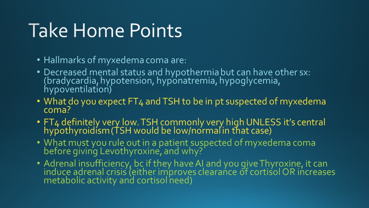 Today we discussed the case of a young woman with history of hypothyroidism who was unhoused and not taking medications for 2 months, presenting with subacute onset fatigue, with periorbital and bilateral lower extremity edema and lower extremity hyperpigmentation, found to have profound hypothyroidism vs mild myxedema coma.