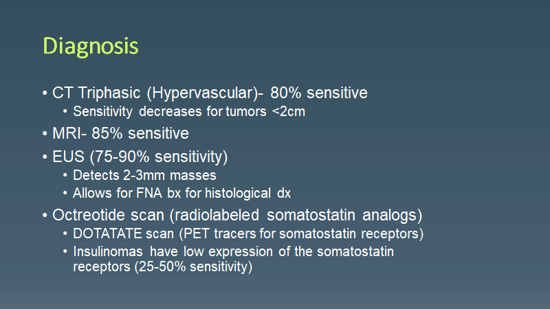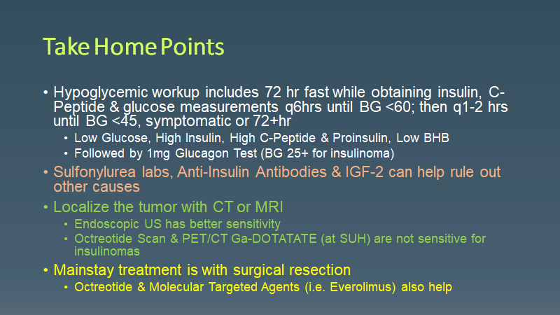 Morning Report Insulinomas December 14, 2020 vmcimchiefs Leave a comment Today, we talked about a poorly controlled diabetic who presented with recurring hypoglycemic episodes and a markedly improved A1c who had results suggestive of an insulinoma Share this: Click to share on X (Opens in new window) X Click to share on Facebook (Opens in new window) Facebook Like Loading... Related