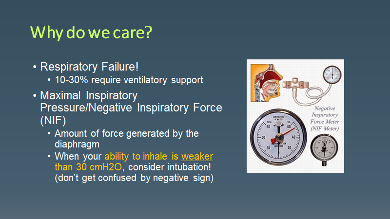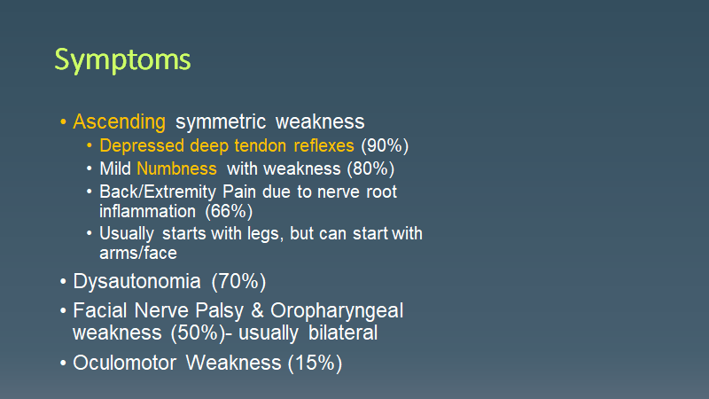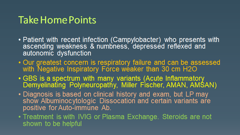 Morning Report Guillain barre Syndrome March 15, 2021 vmcimchiefs Leave a comment Today, we had a classical case of GBS that required close monitoring of NIFs and reviewed the spectrum of GBS Share this: Click to share on X (Opens in new window) X Click to share on Facebook (Opens in new window) Facebook Like Loading... Related