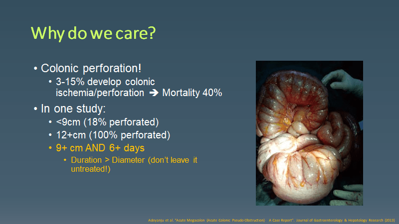 Morning Report Ogilvie’s Syndrome March 15, 2021 vmcimchiefs Leave a comment Today we had a patient who presented with Ogilvie’s Syndrome who required Neostigmine for treatment. Remember that delayed treatment can lead to perforation so don’t wait! Share this: Click to share on X (Opens in new window) X Click to share on Facebook (Opens in new window) Facebook Like Loading... Related