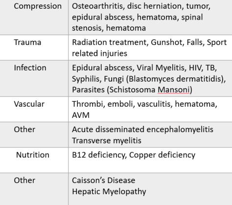 Elderly female with hyperlipidemia and HTN presenting with acute onset tingling back pain between her scapula with subsequent acute onset bl UE weakness and decreased sensation with diminished reflexes throughout.